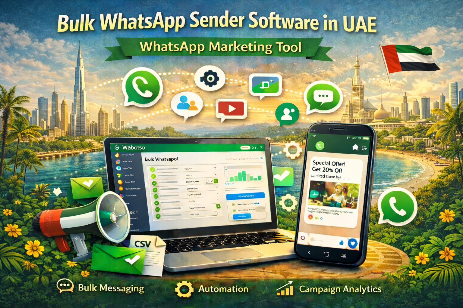 Wabotso offers a feature-rich WhatsApp marketing tool built for businesses targeting UAE customers. It provides:
