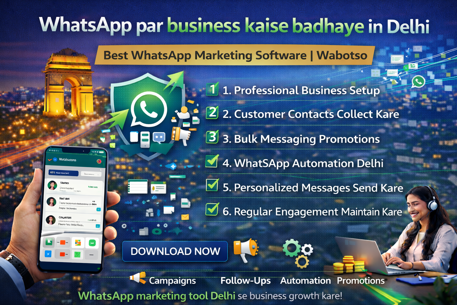 WhatsApp par Business Kaise Badhaye in Delhi – Best WhatsApp Marketing Software | Wabotso