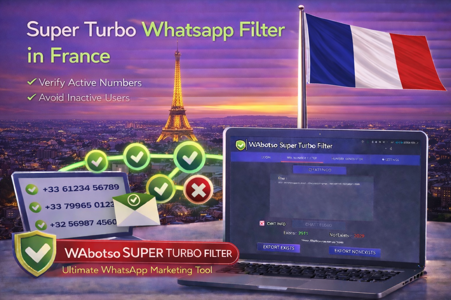 Using Super Turbo Whatsapp Filter in France with WAbotso Turbo Filter allows businesses to scale WhatsApp marketing safely, efficiently, and professionally. Clean data is not an advantage — it is a requirement.
