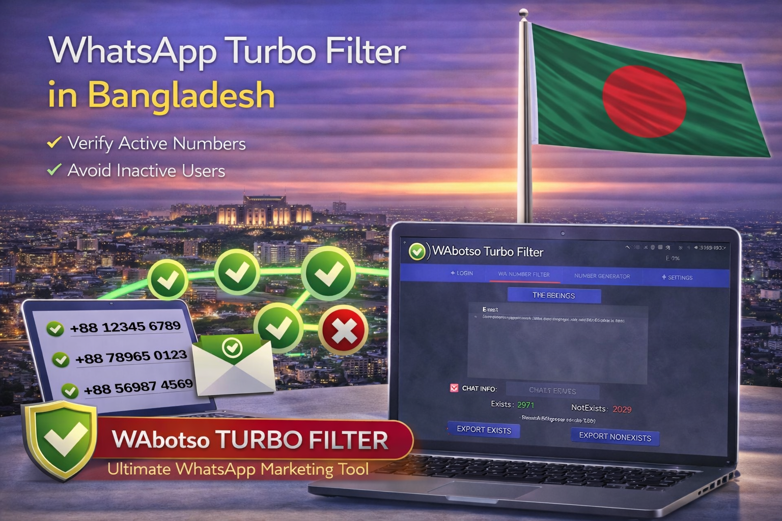 When these unverified numbers are used with bulk WhatsApp software Bangladesh, delivery rates drop and WhatsApp accounts become unstable. WhatsApp Turbo Filter in Bangladesh solves this issue before any message is sent.