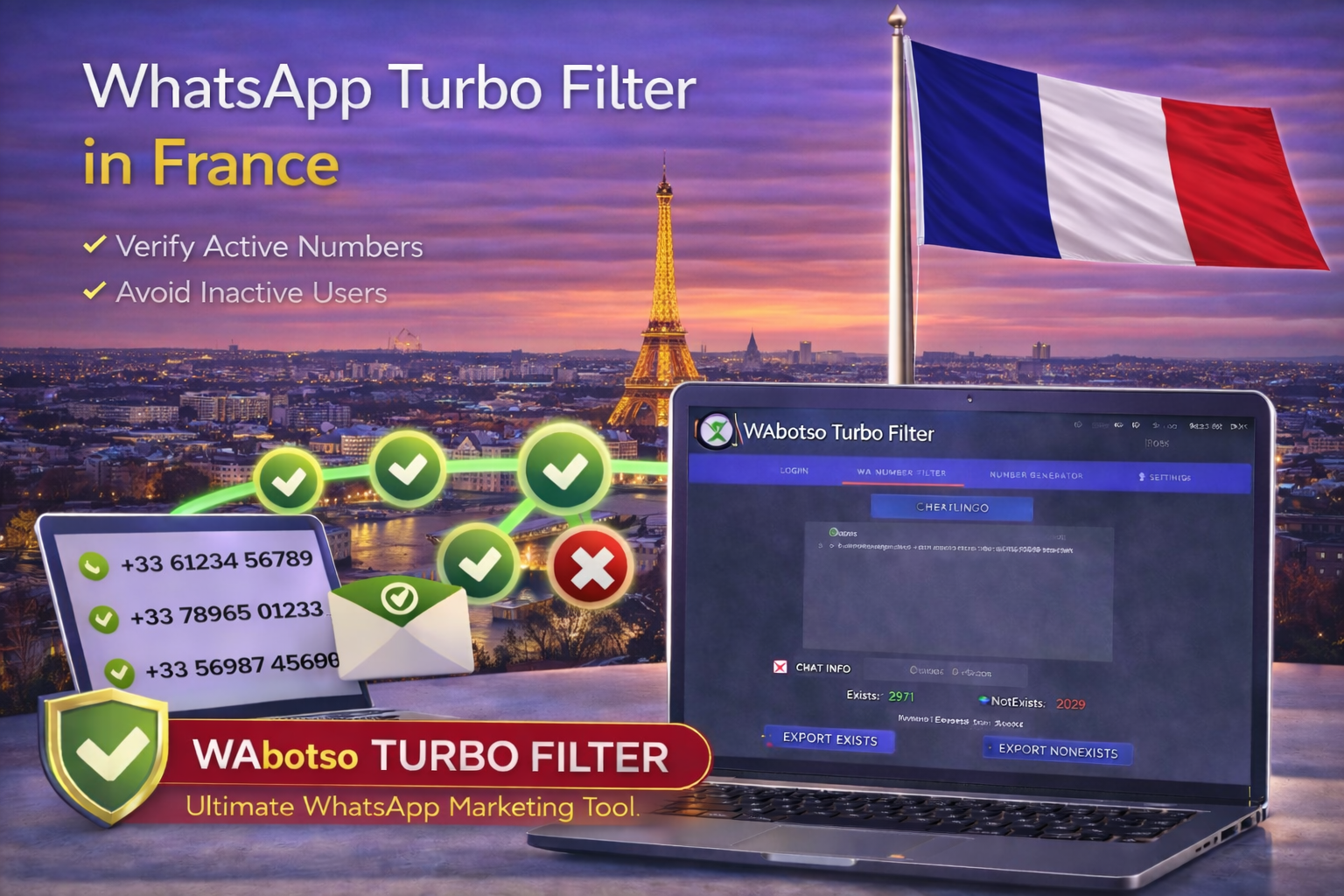 Using WhatsApp Turbo Filter in France with WAbotso Turbo Filter allows businesses to protect WhatsApp numbers, improve delivery rates, and scale WhatsApp marketing with confidence. Clean data is not optional — it is the foundation of success.
