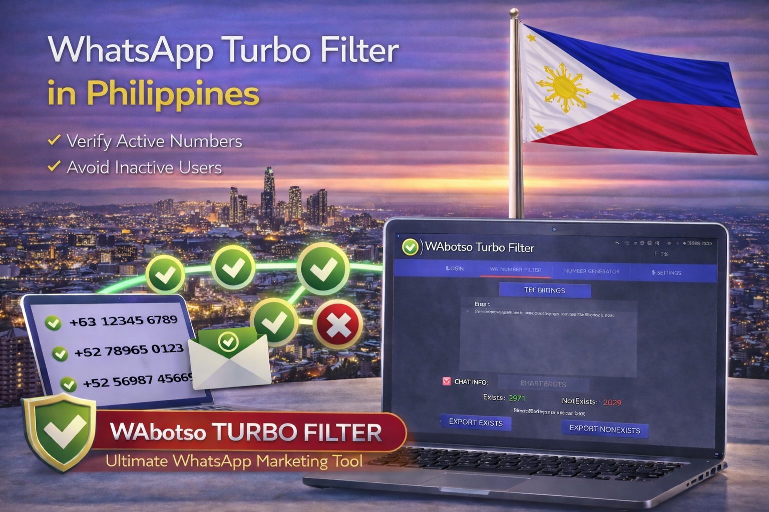 In the Philippine market—where WhatsApp engagement is high but tolerance for spam is low—this verification step protects WhatsApp accounts and improves campaign effectiveness. As a trusted whatsapp tool Philippines, WAbotso Turbo Filter focuses on accuracy, speed, and stability.