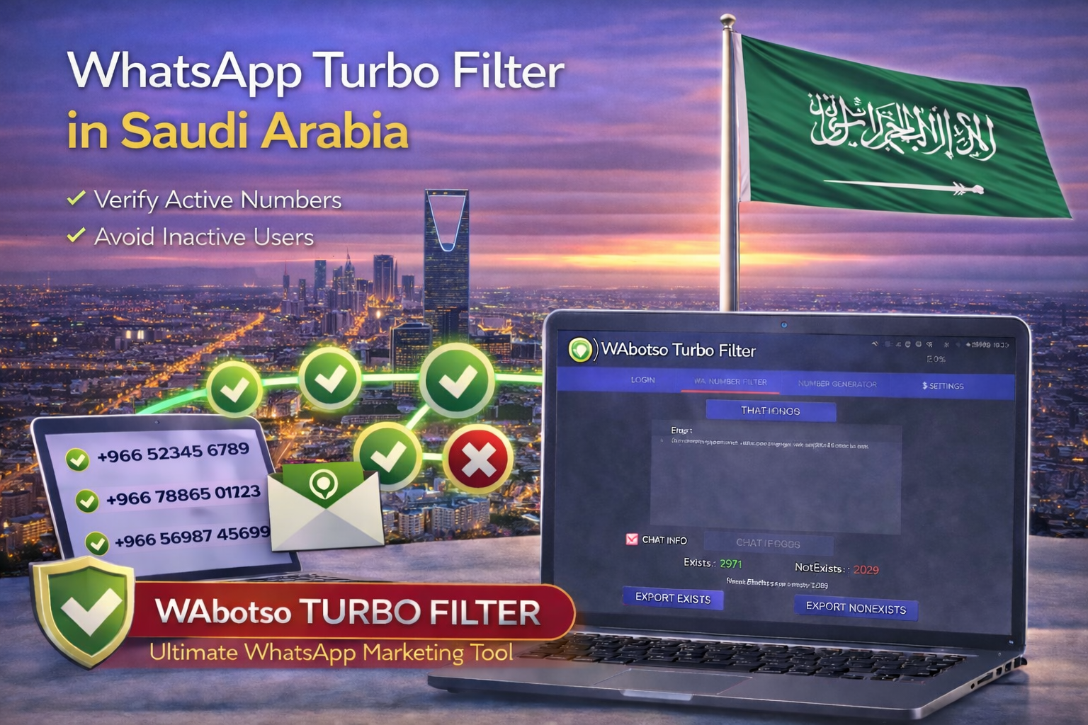 Using WhatsApp Turbo Filter in Saudi Arabia with WAbotso Turbo Filter allows businesses to protect WhatsApp numbers, improve campaign performance, and scale communication safely. Clean data is not an option—it is the foundation of professional WhatsApp marketing.
