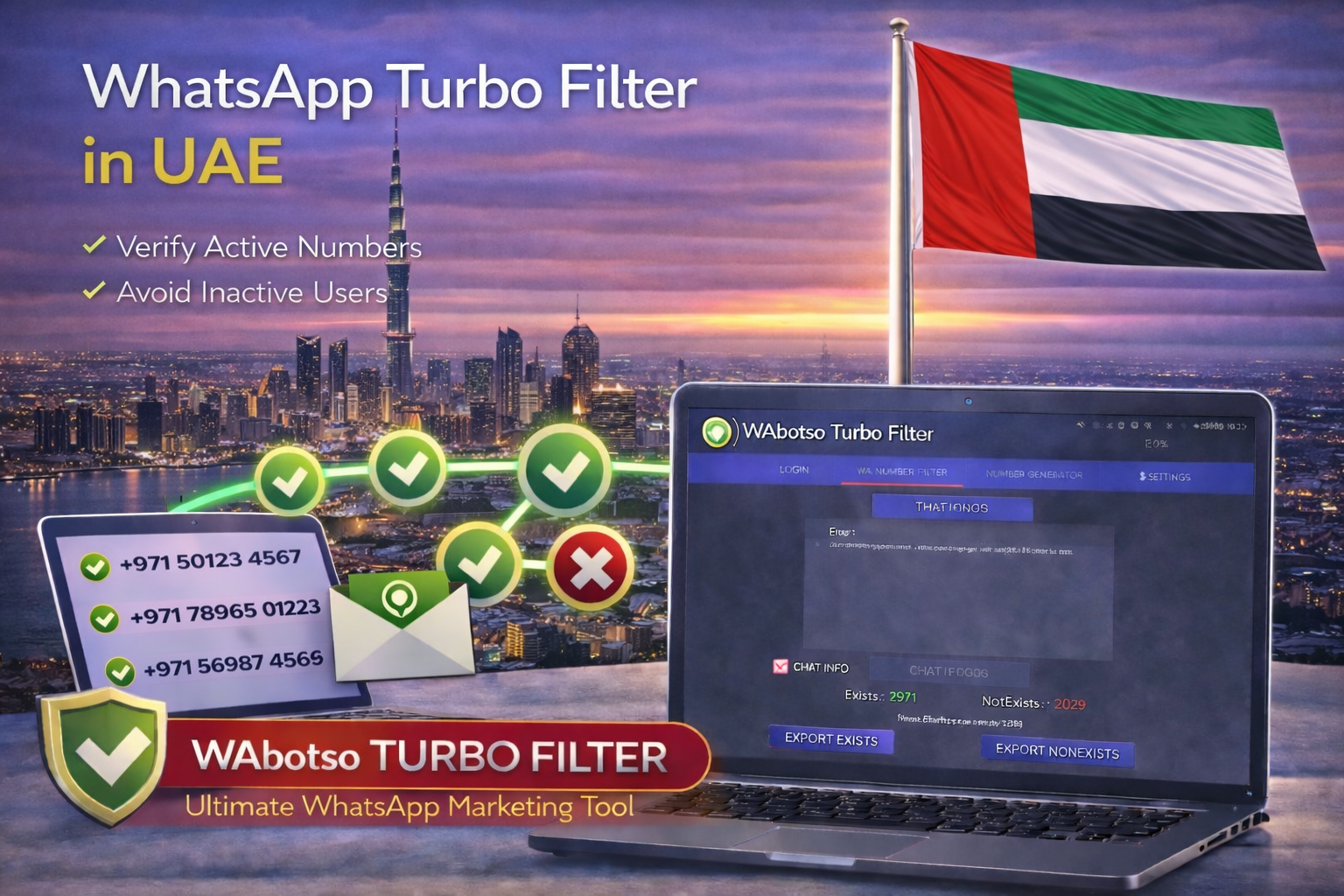 In the UAE market—where accuracy and reputation matter—this verification step protects WhatsApp accounts and ensures messaging tools operate on reliable data. As a trusted whatsapp tool UAE, WAbotso Turbo Filter focuses on verification speed, accuracy, and operational safety.